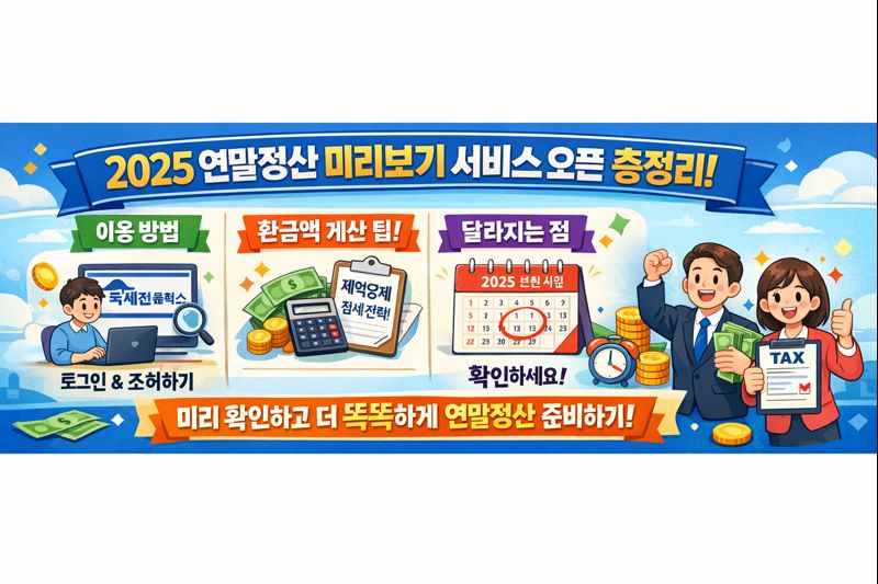 안녕하세요, 세금·재테크 정보를 공유하는 블로거 [레]입니다! 😊 연말이 다가오면서 직장인분들 사이에서 '연말정산'이 최대 화제죠? 특히 '2025 연말정산 미리보기 서비스 오픈' 소식이 뜨겁게 떠오르고 있어요. 이 서비스를 이용하면 내년 1월 본격 연말정산 전에 환급액을 미리 예측하고, 추가 절세 전략을 세울 수 있어서 정말 유용하답니다. 오늘 포스팅에서는 최신 정보(2025년 12월 26일 기준)를 바탕으로 '2025 연말정산 미리보기 서비스 오픈 일정', '국세청 홈택스 연말정산 미리보기 이용 방법', '연말정산 환급액 미리 계산 팁', '2025 연말정산 달라지는 점' 등을 총정리해 볼게요. '연말정산 미리보기 서비스', '2025 연말정산 간소화 서비스 오픈', '홈택스 연말정산 미리보기 환급액' 같은 키워드로 검색하시는 분들께 도움이 되도록 상세히 담아봤어요. 국세청 공식 발표와 주요 뉴스 보도를 종합했습니다. 실제 이용 시 홈택스 사이트를 확인하세요. 그럼 본격적으로 들어가 볼까요?